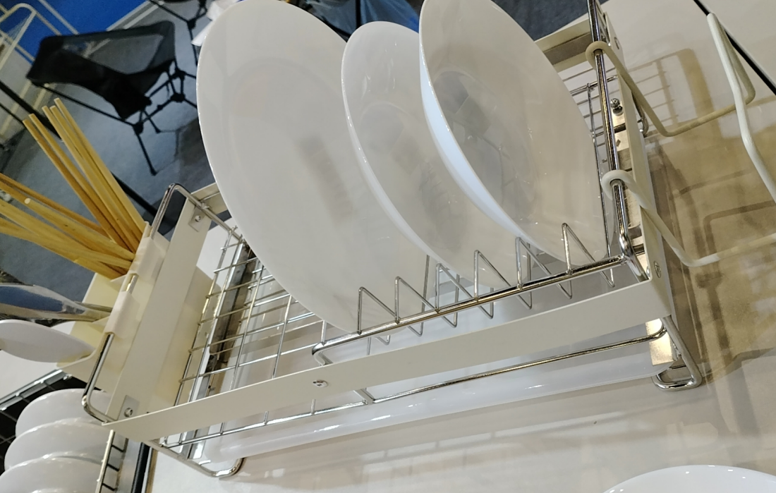 Série de rangement pour cuisine : l'égouttoir à vaisselle extensible en acier inoxydable, conçu pour une fonctionnalité et une efficacité d'espace optimales, s'est démarqué. La série comprend également des supports muraux multifonctionnels et des porte-couteaux magnétiques, tous conçus avec une esthétique minimaliste idéale pour les cuisines modernes et compactes.