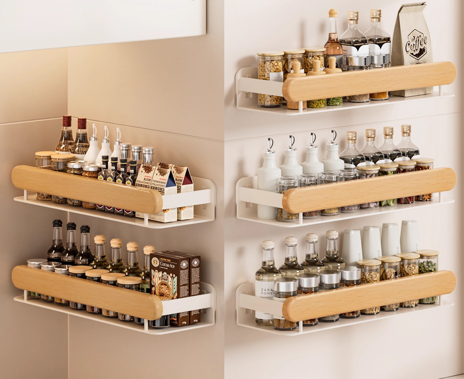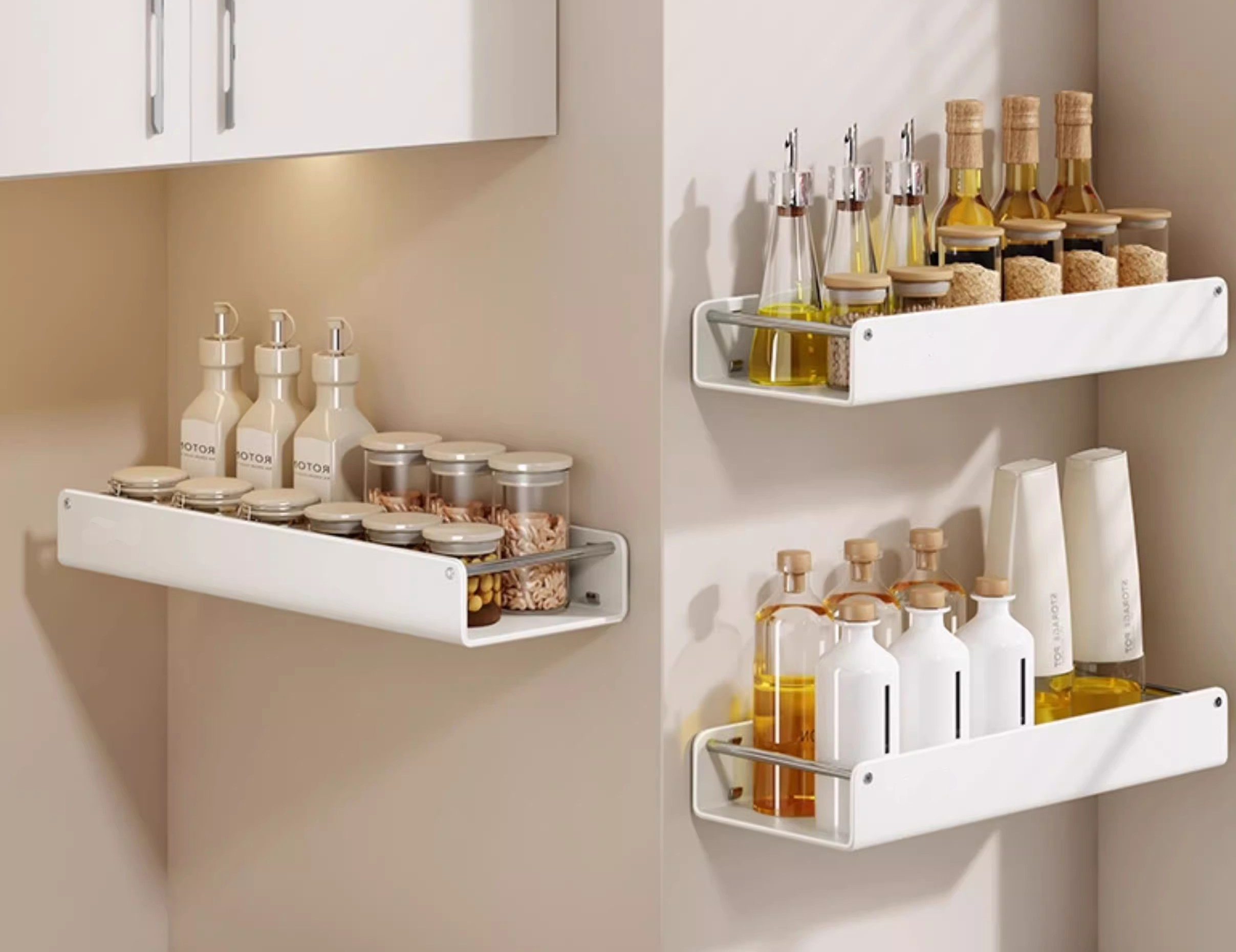Les supports muraux s'installent directement sur le mur, soit au-dessus de la cuisinière, soit à côté de l'évier, gardant ainsi les bouteilles d'assaisonnement hors du comptoir. Pour les petites cuisines dotées de comptoirs étroits, cette conception peut libérer 30 à 50 % de l'espace de comptoir, soit suffisamment pour placer une planche à découper ou une petite casserole. Cependant, il y a aussi des considérations à prendre en compte : par exemple, si le mur est en carrelage ou en cloison sèche, l'installation sera-t-elle stable ? La plupart des racks muraux sont livrés avec un adhésif puissant ou des vis à expansion ; les supports adhésifs conviennent aux murs carrelés lisses et peuvent supporter un poids de 2 à 3 kg, tandis que les vis d'expansion conviennent mieux aux cloisons sèches, garantissant que le support ne tombe pas même avec des bouteilles d'assaisonnement plus lourdes. De plus, les grilles murales doivent être à une hauteur raisonnable : trop hautes et il n’est pas pratique de prendre les assaisonnements, trop basses et cela peut bloquer l’échappement du poêle. Une hauteur de 50 à 60 cm au-dessus du poêle est généralement recommandée pour un accès facile.